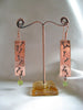 Copper, hand fabricated. Jade, 5-6mm approximately Antiqued copper French ear wires Overall drop is 3” Note: Each hand fabricated piece will vary slightly. -