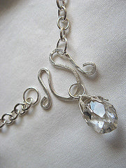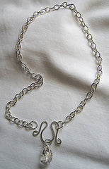 Sterling silver heavy cable chain, 5.7mm; sterling silver wire clasp (formed & hammered by artist); sterling silver rings and bell cap; Herkimer ‘Diamond’, approximately 25mm, A grade, excellent clarity. (Note: each ‘diamond’ will vary slightly as these are natural stones and no two are alike.)